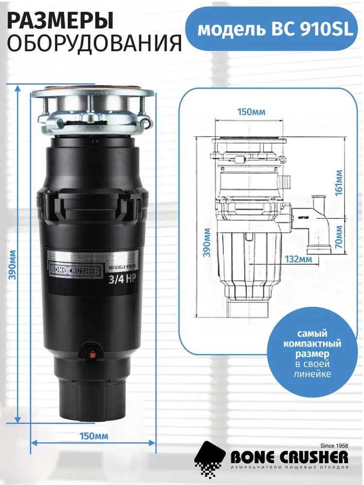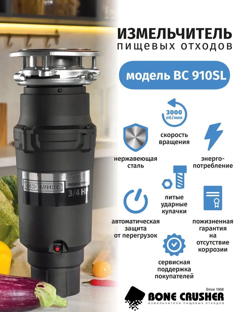 Новинка, не имеющая аналогов на российском рынке. Самый мощный, самый компактный, самый тихий, самый легкий и самый производительный измельчитель пищевых отходов для мойки.